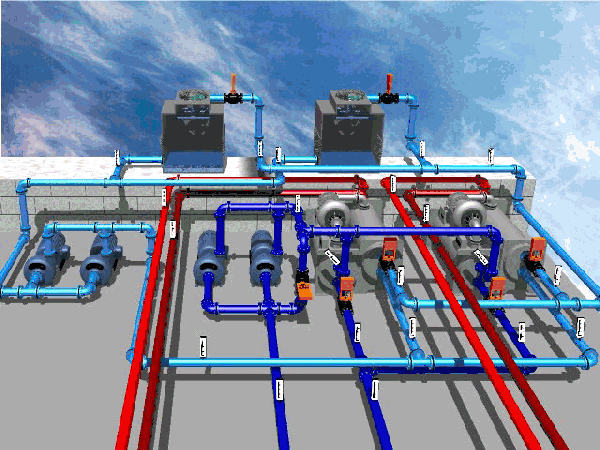 冷水机组是中央空调的制冷源,“心脏”,通往各个房间循环水由冷水机组进行“内部交换”,降温为“冷却水”。它由:制冷机、冷却水循环系统、冷冻水循环系统、风机盘管系统和冷却塔组成。