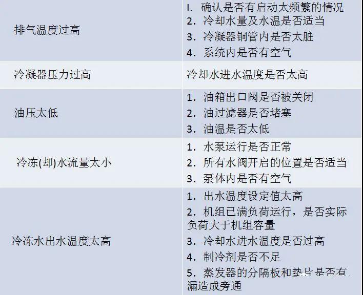 此外,还可以触摸冷水机组各部分及管道,气管、液管、水管、油管等,感觉压缩机工作温度及振动;两器的进出口温度;管道接头处的油迹及分布情况等。