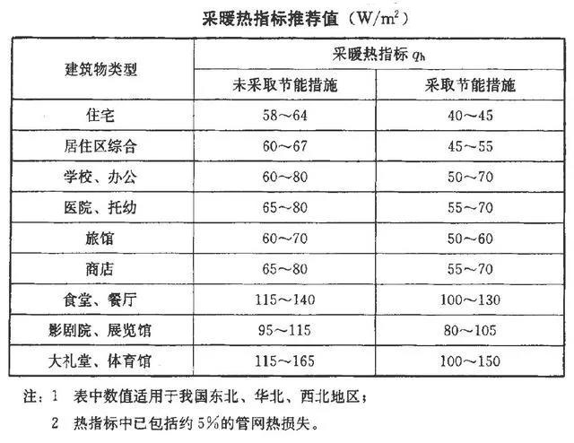 ①采暖热指标参考值