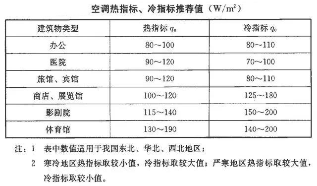 1、冷热负荷指标参考值