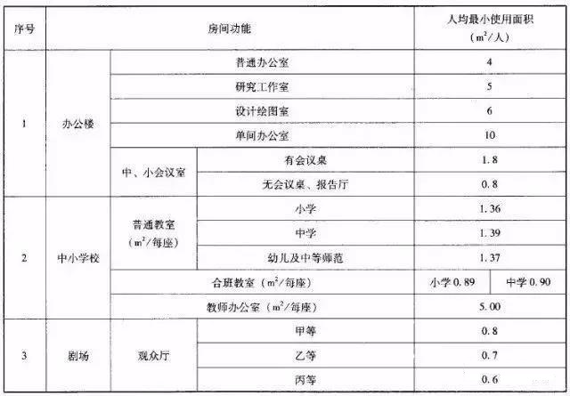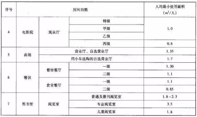 ①各类建筑人均面积参考值