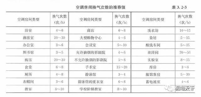 5、换气次数参考值