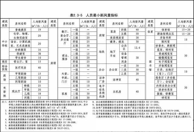 4、人均新风量参考值