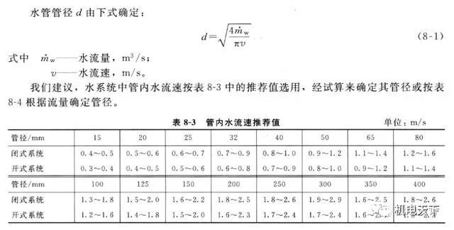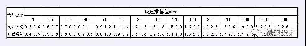 ①管径和流速参考值