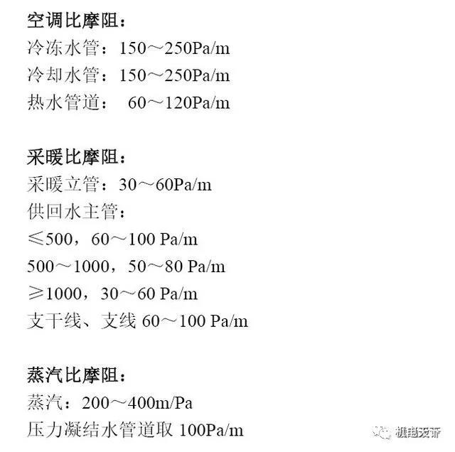 ②空调冷热水比摩阻参考值